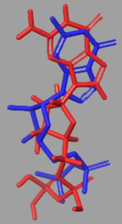 图注:分子对接前(蓝色)后(红色)参照配体的叠加图