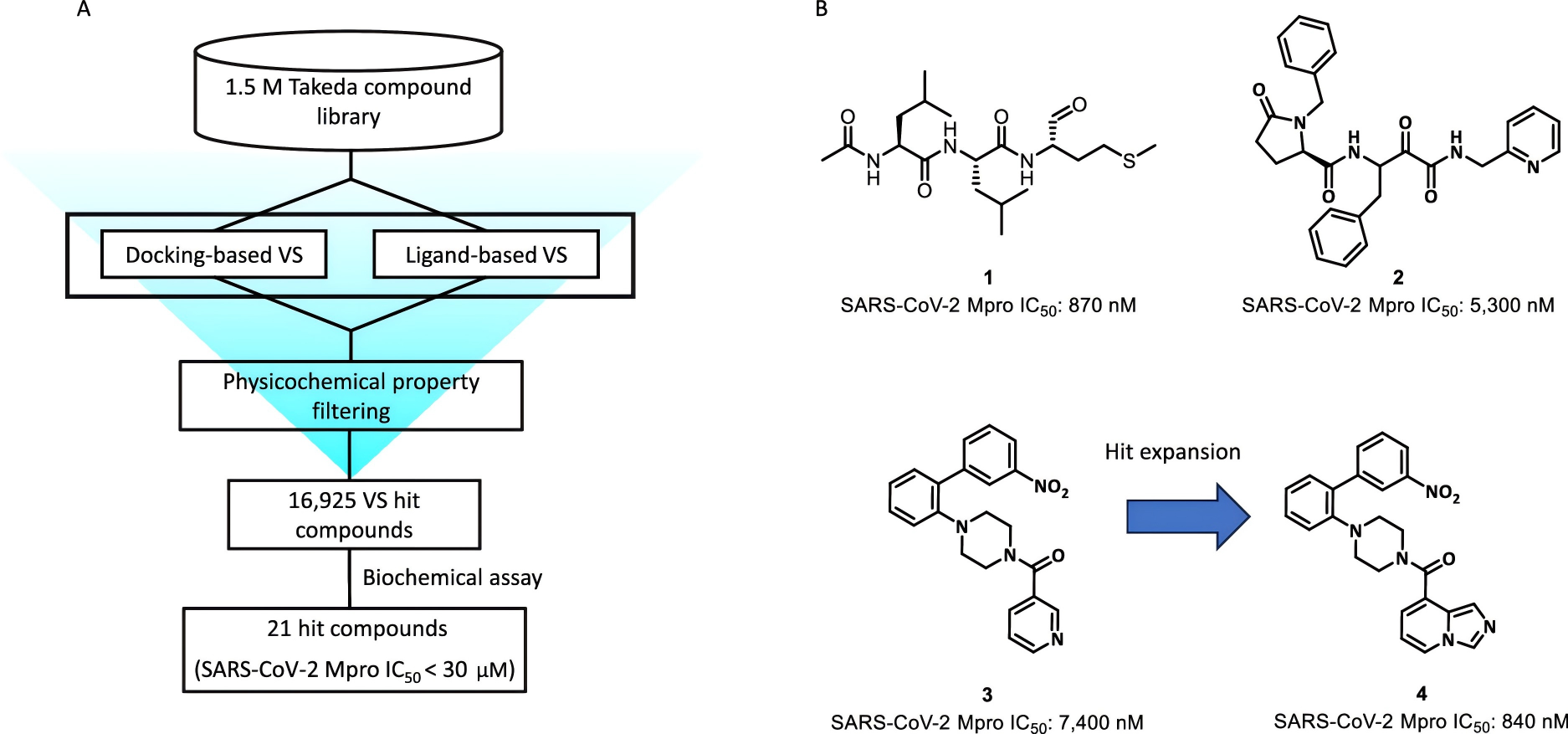 近期,来自武田制药(Takeda)和Schrödinger(薛定谔软件)的科学家通过计算机辅助药物设计(CADD),发现了一类强效的非共价抑制剂,可抑制SARS-CoV-2 Mpro,且具有泛冠状病毒(pan-CoV)Mpro抑制活性,有望解决现有SARS-CoV-2治疗药物存在的各类局限性。