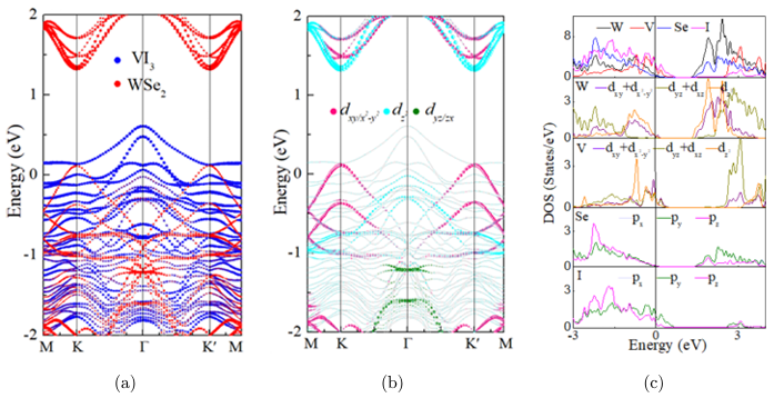 作者构建了VI3 / WSe2异质结结构,随后计算异质结电子性质,见图2及图3。